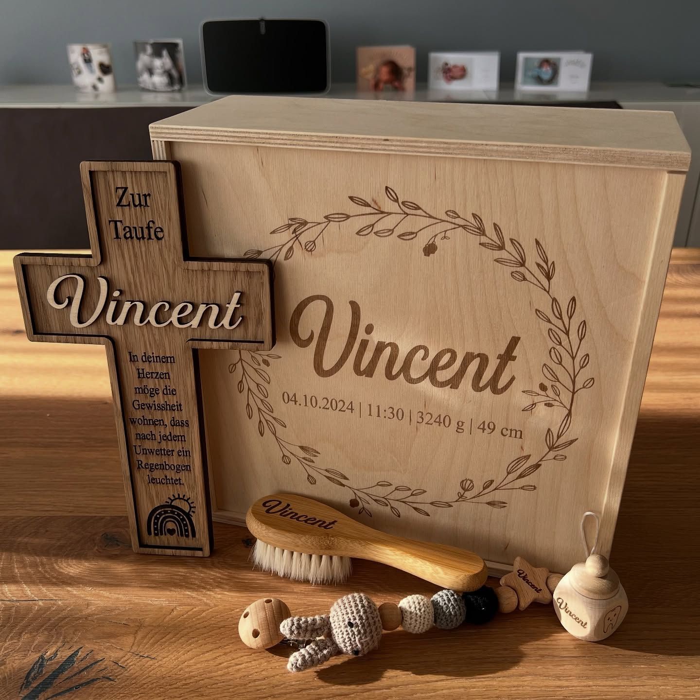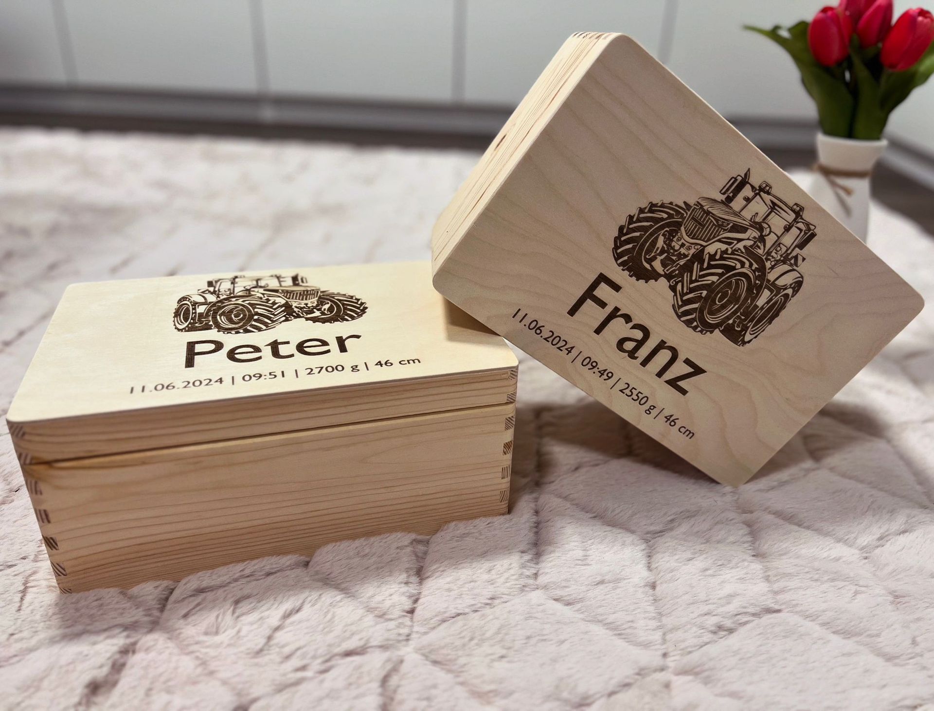 Erinnerungsboxen & Holzschatullen: Mit Namen, Datum und Wunschtext graviert