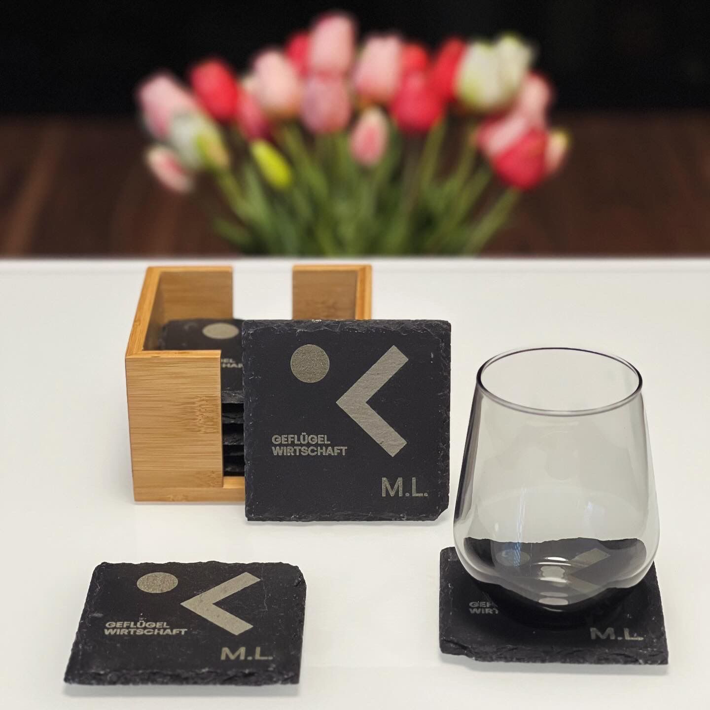Schieferuntersetzer & Sets: Mit Wunschtext, Logo oder Wunschmotiv