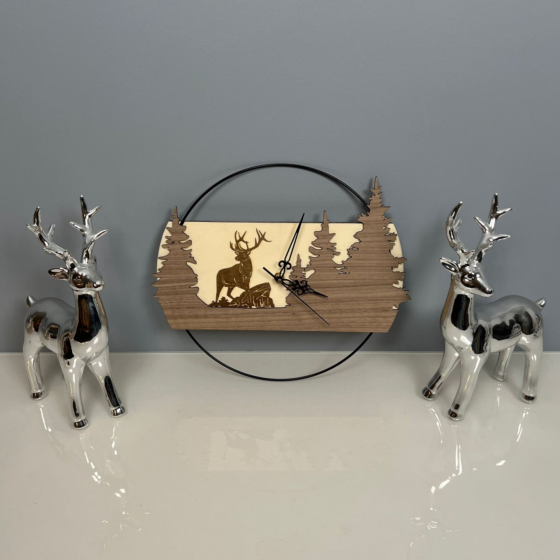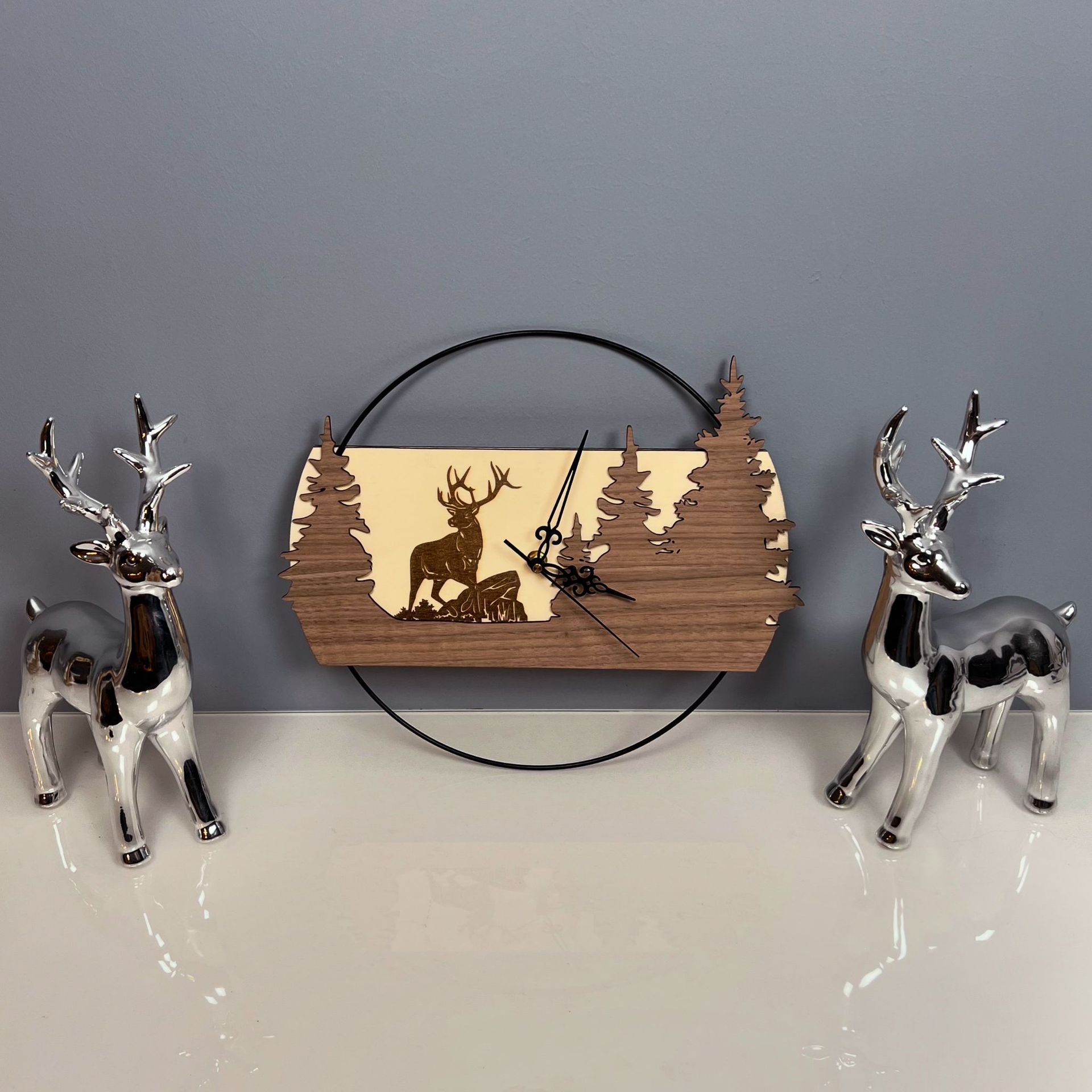 Holzuhren: Mit Wunschmotiv wie Hirsch oder Berge, Ø ca. 30 cm