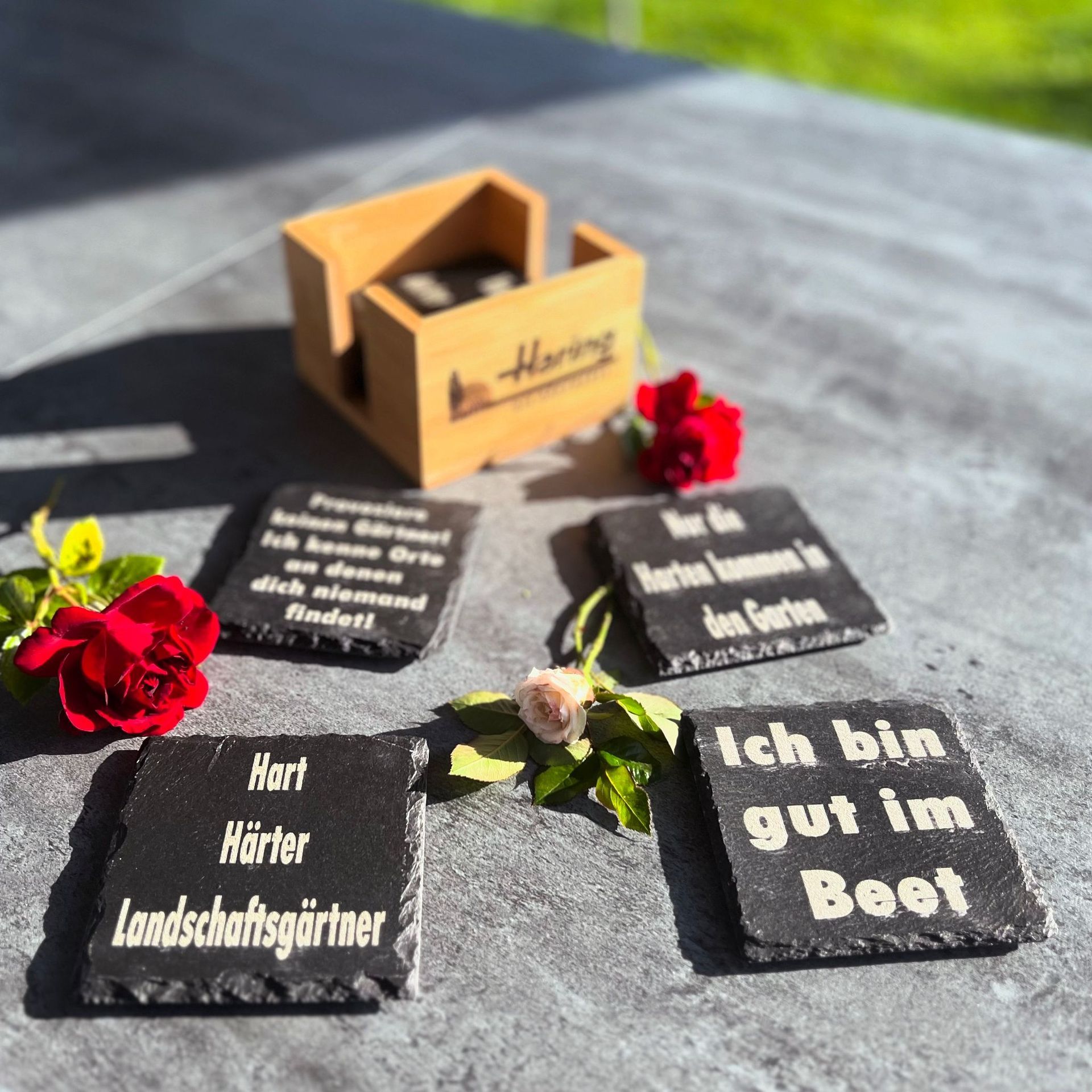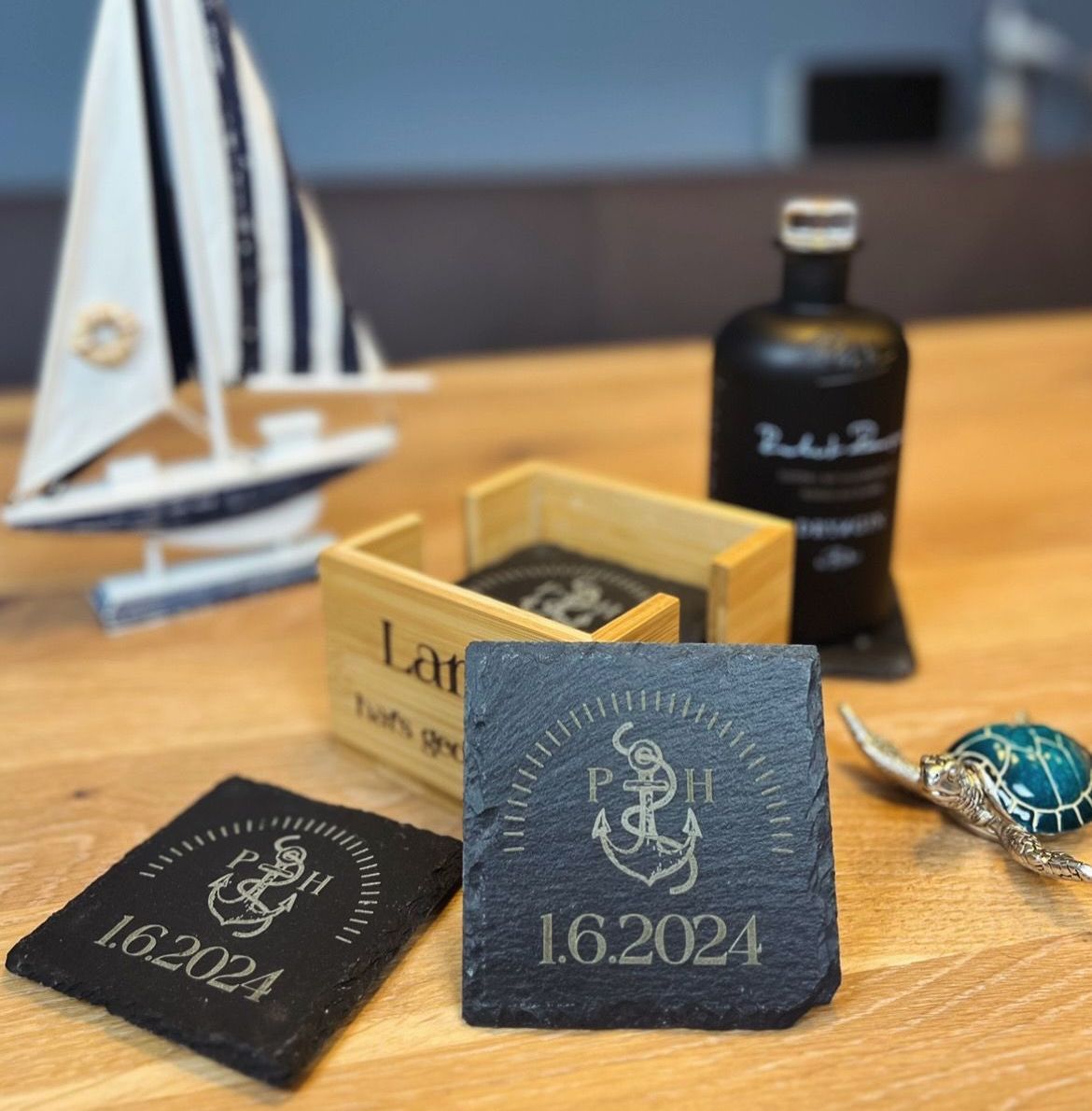 Unsere Schieferuntersetzer, Schilder und Tafeln sind nicht nur praktisch, sondern auch ein echtes Design-Statement. Jedes Stück wird individuell nach Wunsch graviert und eignet sich ideal als Geschenk.