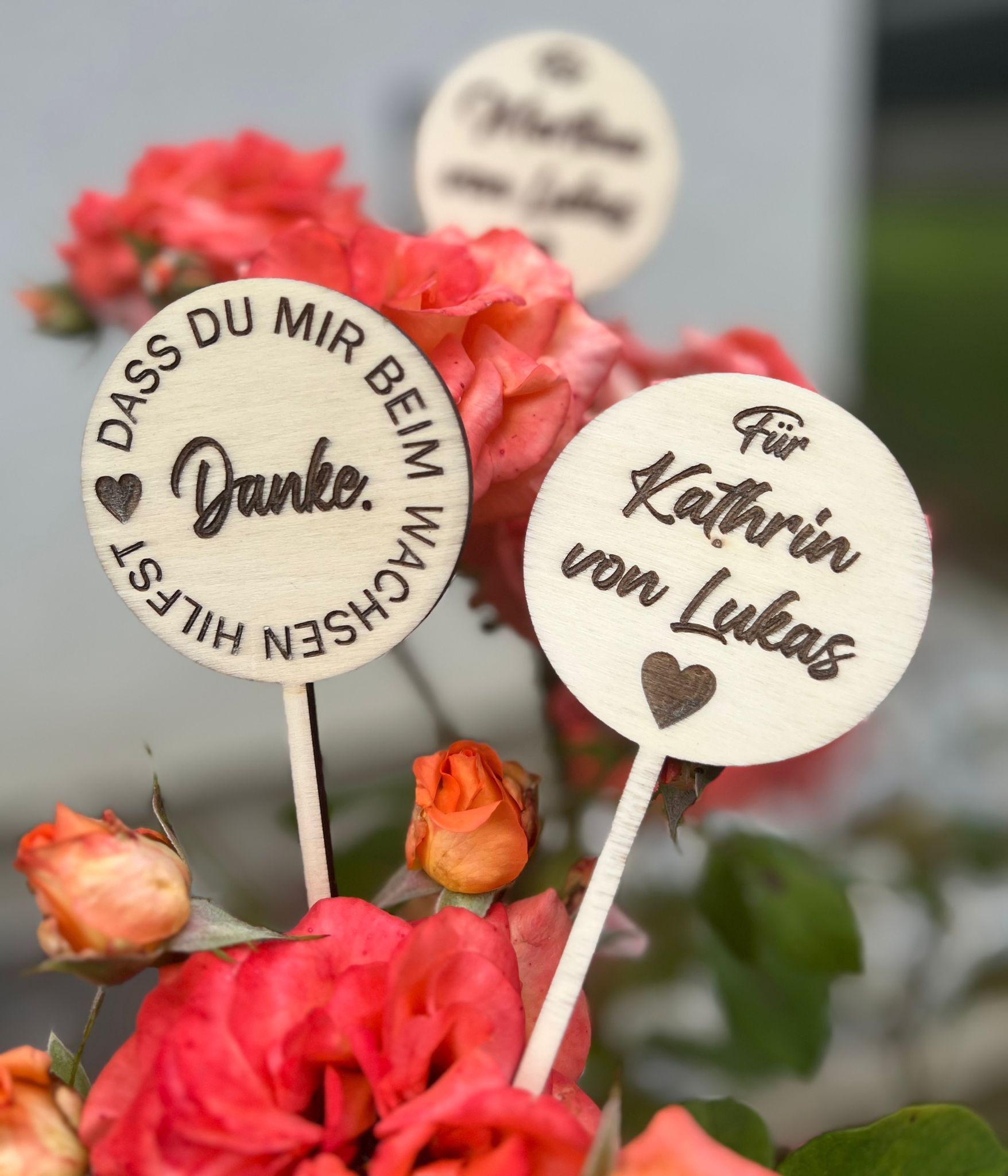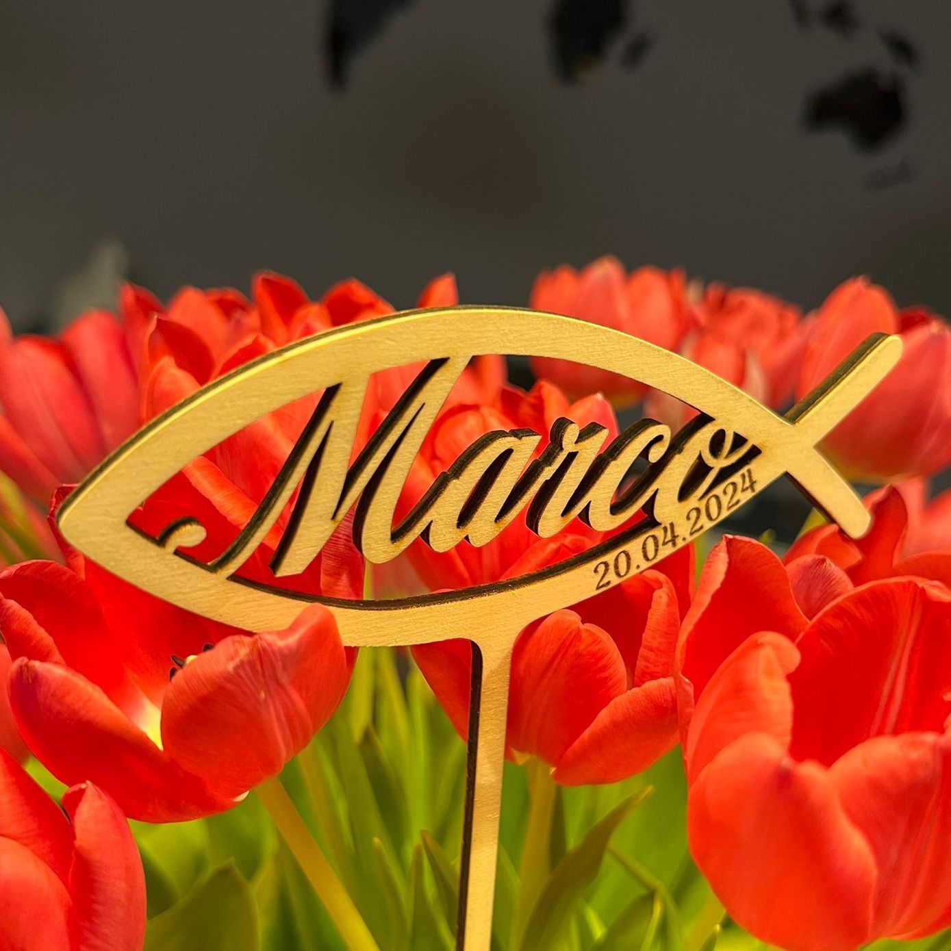 Personalisierte Topper: Für Torten oder Blumensträuße, auf Wunsch mit Namen und Symbolen