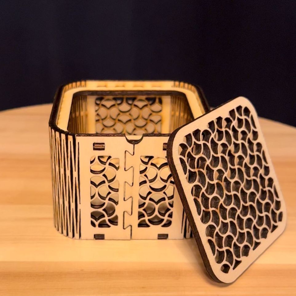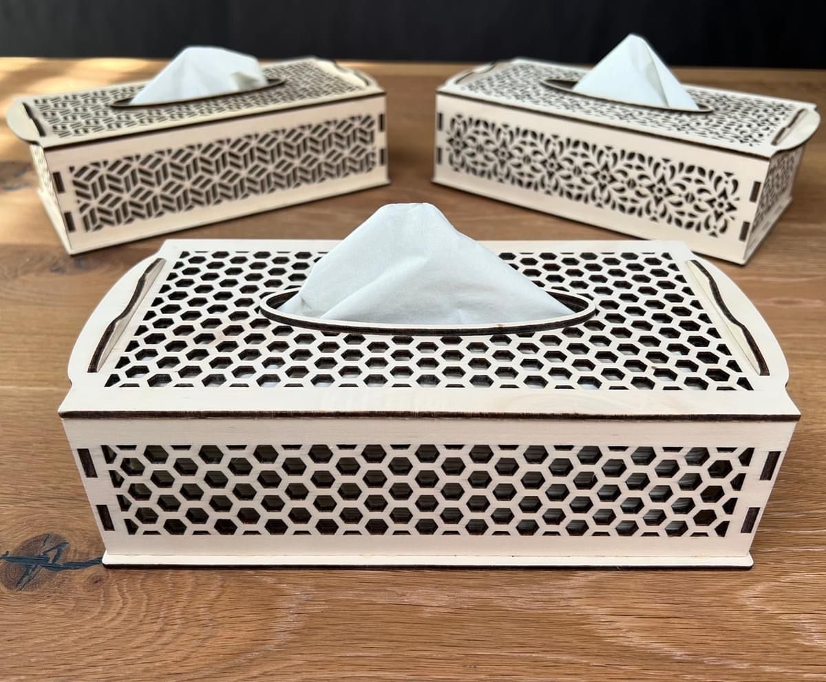 Taschentücherbox: Elegant gelasert in drei Mustern – Geometrie, Wabe oder Traditionell