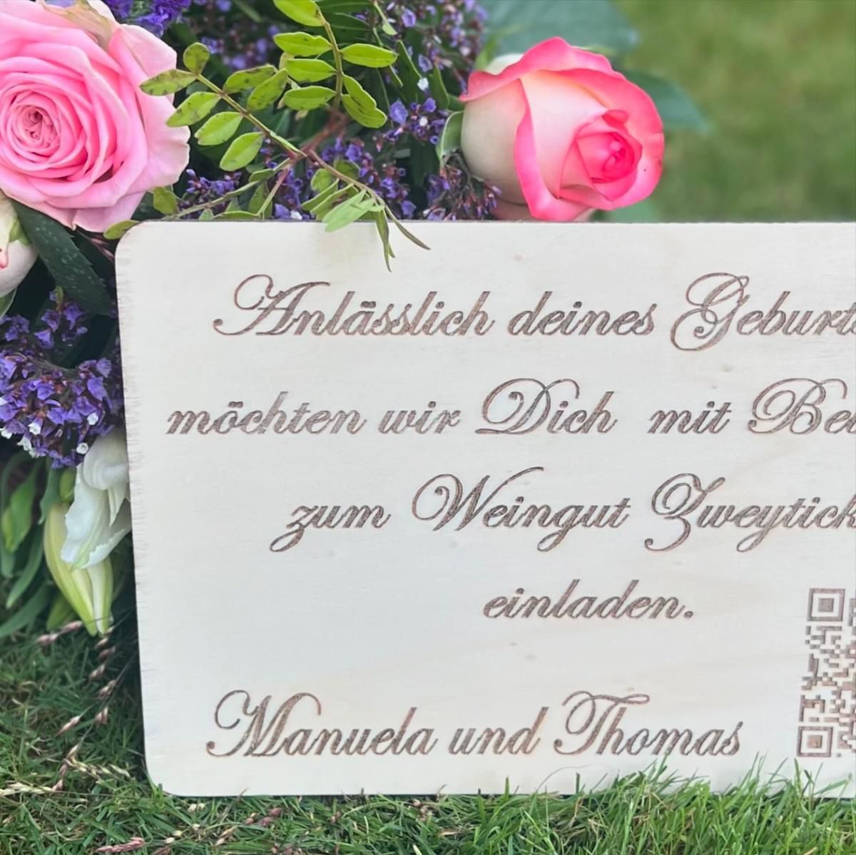 Hast du eine spezielle Idee für ein ganz besonderes Geschenk? Wir bieten dir die Möglichkeit, personalisierte Wunschartikel ganz nach deinen Vorstellungen anfertigen zu lassen. Mit unserer fortschrittlichen Laser Holzgravurtechnik setzen wir deine kreativen Ideen in die Realität um. Egal, ob es sich um ein individuelles Design, eine besondere Botschaft oder ein einzigartiges Muster handelt – wir arbeiten eng mit dir zusammen, um deine Wünsche perfekt umzusetzen.