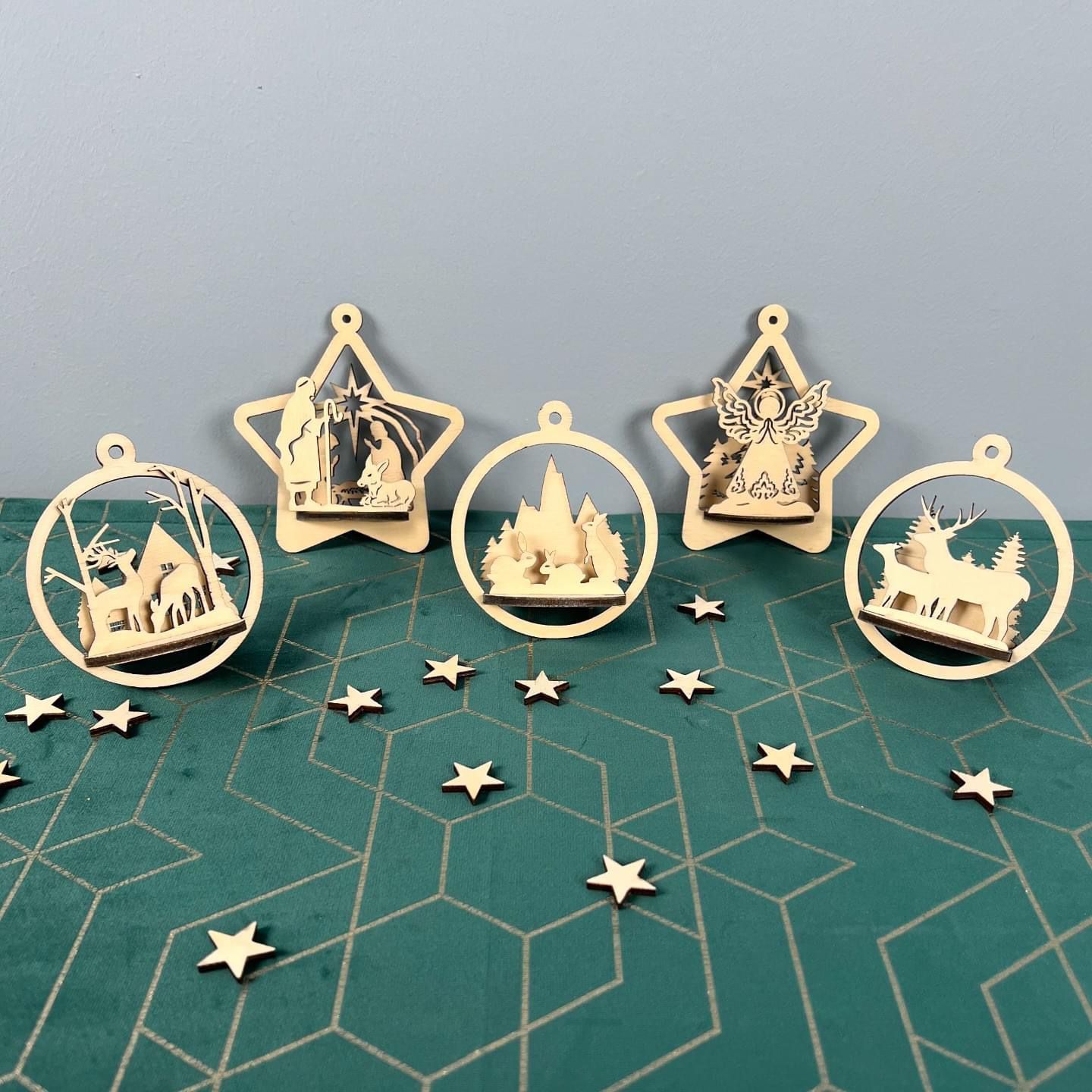 Weihnachtskugeln & Wintersterne: Detailreich gelasert, ideal für Baum & Deko
