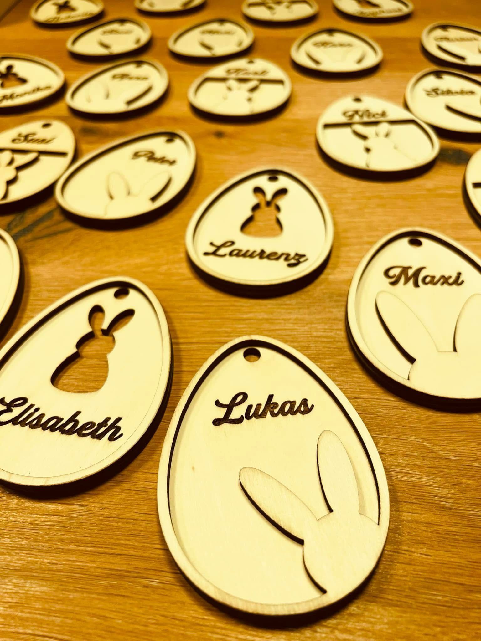 Wunschtexte möglich: Personalisierte Gravur für Eier und Anhänger