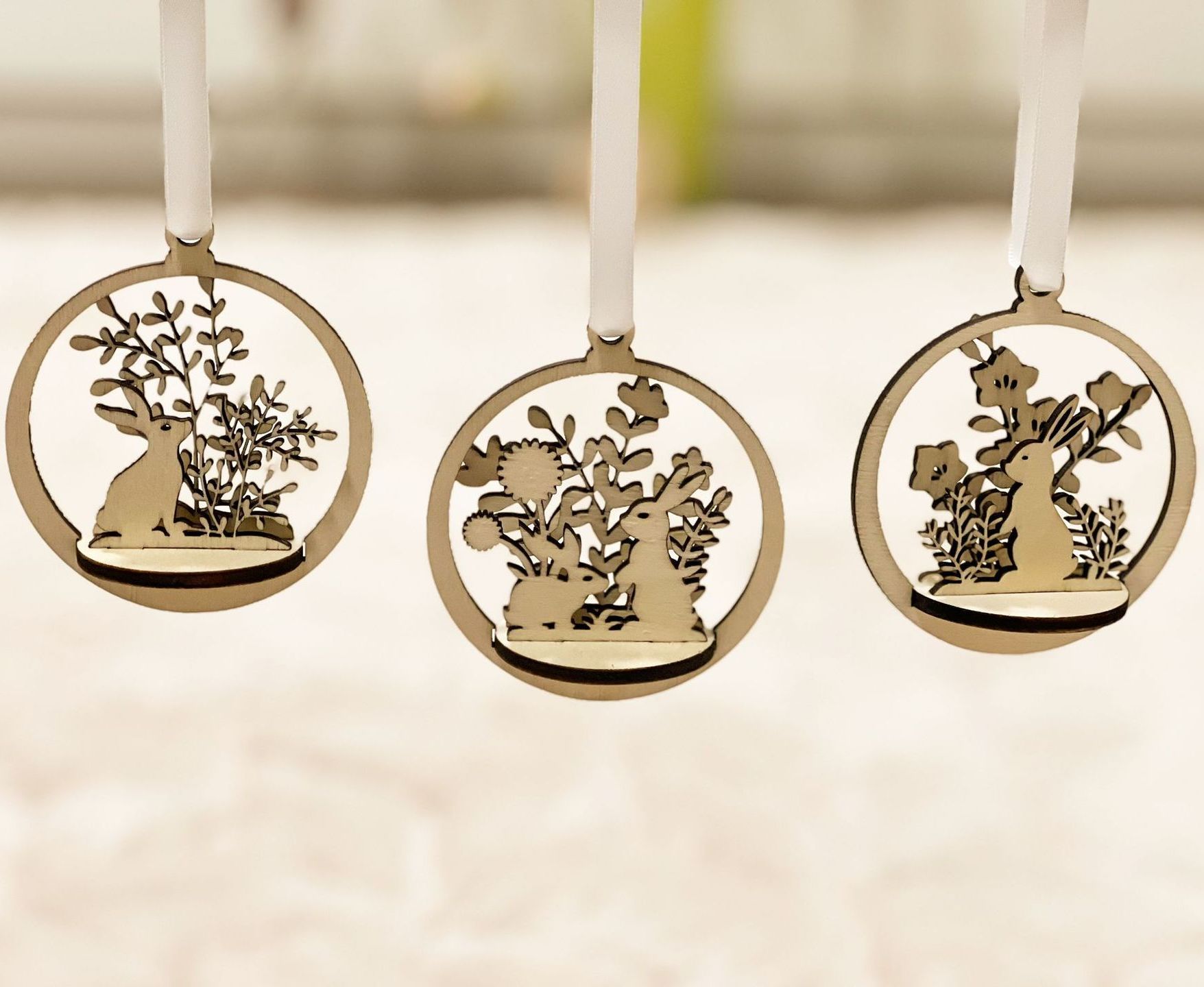 Holzeier & Osterkugeln: 3er-Sets mit natürlichen Motiven – ab € 35,00
