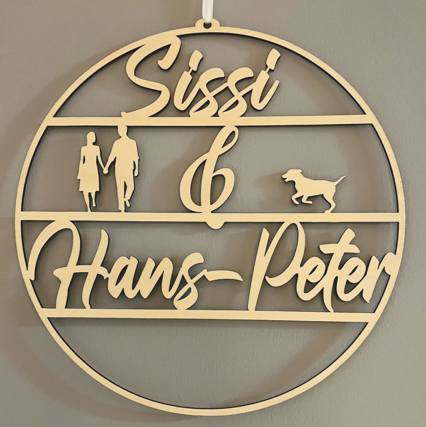 Türkränze: Mit Wunschnamen und individuellen Figuren (Paar, Hund, Kind), Ø 30–45 cm